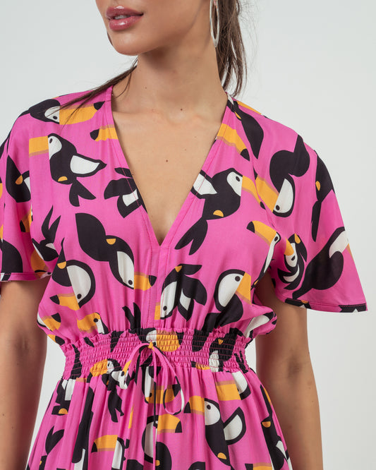 VESTIDO LASTEX NAZARÉ TUCANO ROSA CHOQUE